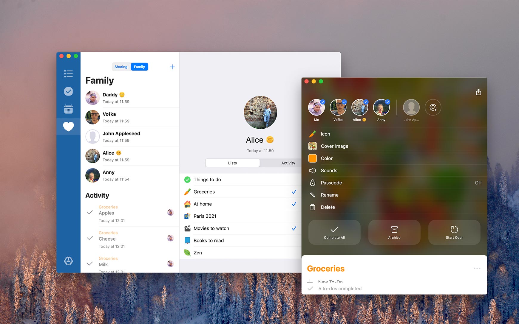 Basic family collaboration functionality is available for free! An optional family subscription grants all Pocket Lists premium features to each family member you invite and enables advanced features such as family activity log and to-do assignments. The subscription is just $3.99/mo for the entire family of up to six family members.